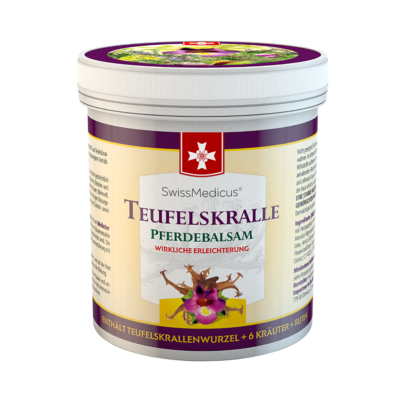 Die in diesem Produkt enthaltenen Kräuter- und Pflanzenextrakte sind von höchster Qualität und stammen von renommierten Vertragspartnern. Die Qualität der Kräuterextrakte wird laufend geprüft, wodurch der standardisierte Gehalt an Wirkstoffen gewährleistet wird. Die Herstellung der SwissMedicus Teufelskralle basiert auf langjähriger Expertenerfahrung mit Naturkosmetik. Eine Hautrötung ist natürlich und ein Zeichen für die intensive Durchblutung.
