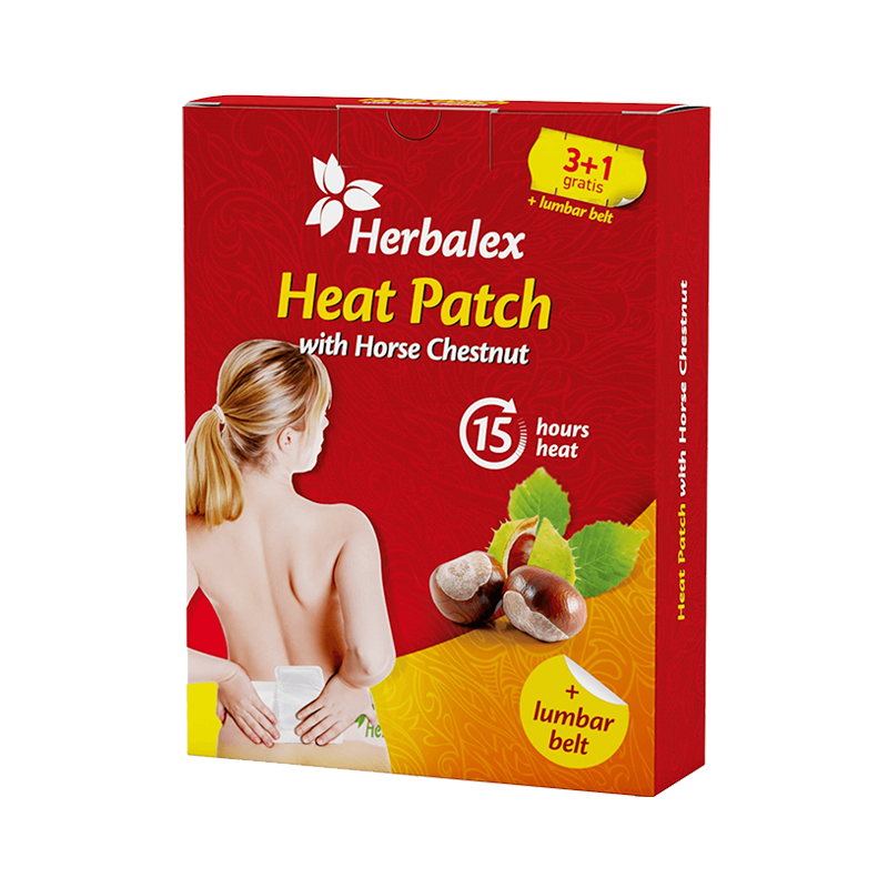 Das Wärmepflaster Herbalex mit Kastanie schenkt ein Gefühl der Linderung und Durchwärmung im belasteten Bereich von Rücken, Schulter, Hüften und Muskeln. Dies geschieht durch die Einwirkung einer trockenen Wärme, die schon lange für ihre positive Wirkung auf den Bewegungsapparat bekannt ist. Nach Herausnahme des Pflasters aus der Schutzhülle beginnen die im Kissen enthaltenen Stoffe mit Sauerstoff zu reagieren, daher erwärmt sich das Pflaster. Der Wärmeeffekt äußert sich an der betroffenen Stelle bis zu 15 Stunden lang. Das Wärmepflaster Herbalex mit Kastanie schenkt dank der enthaltenen Wirkstoffe Aescin und Aesculin eine bessere Linderung.